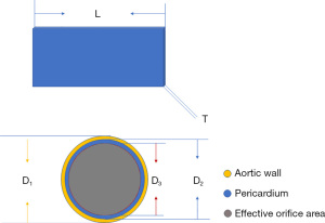 We observed several patients remaining relatively high PPG during the follow-up, most of whom had small annulus size before surgery. Our research revealed a significant inverse correlation between residual peak pressure gradient within 24 hours after surgery and the z-score of the preoperative size of the aortic annulus (P=0.008) (Figure 5B). The efficiency of effective orifice area (EOA) theory might explain it well. As shown in Figure 8, the efficiency of EOA is positively related to the diameter of the annulus. Polito et al. also reported an inverse linear correlation between AV peak gradient at follow-up and preoperative aortic annular size (24,25). Baird et al. and Polito et al. both agreed to perform annulus enlargement on patients whose annular Z scores <2 or annulus diameter <15 mm, resulting in relatively low PPG (23-25). Marathe et al. reported a modified Ozaki procedure to enlarge the annulus in children with annulus diameter smaller than 21 mm (median 17; range, 9.2–20.9 mm) (26). At mean follow-up of 11.9 months, 80% of patients had less than moderate AS and all patients had the annulus Z-score greater than 0. Thus, annulus enlargement should be taken into consideration in patients with small annulus before surgery.