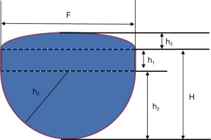 h1: commissural height; h1=0.2D