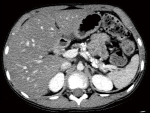 A 13-year-old boy was admitted to this University Children’s Hospital with a 5-year history of abdominal pain, diarrhea, and poor weight gain despite having a good appetite. He described repeated acute episodes of severe colicky abdominal pain and frequent bulky and foul smelling stools. He had been treated with growth hormone (GH) for short stature since 8 years of age. Despite GH therapy for 5 years, his height was 146 cm (5th to 10th centile) and his weight was 34 kg (3rd centile), which implied failure to thrive. His antenatal care and delivery had been unremarkable. When he was 5 months old, he had a 1-month admission to our hospital due to decreased activity and persistent mucoid stool. Laboratory findings at this time demonstrated hypoalbuminemia and hyponatremia with a normal serum C-reactive protein (CRP) level. Chronic inflammation of the duodenum with eosinophilic infiltration was demonstrated on endoscopic biopsy. At that time, he was diagnosed with cow’s milk protein induced enterocolitis (CMPIE), which improved with treatment. One year prior to the present admission, he underwent surgery for intussusception. He also had a history of seasonal allergic rhinitis. His older brother had died suddenly from pneumonia of unknown cause as an infant. His 7-year-old brother had allergic rhinitis and intermittent diarrhea. All of his ancestors were of Korean ethnicity. There was no family history of IBD, EoGE, autoimmune diseases, pancreatitis, or tuberculosis (TB). We considered relatively common causes of chronic abdominal pain in South Korea, such as EoGE and IBD, based on his symptoms and past medical history of allergic enteropathy, short stature, and intussusception.